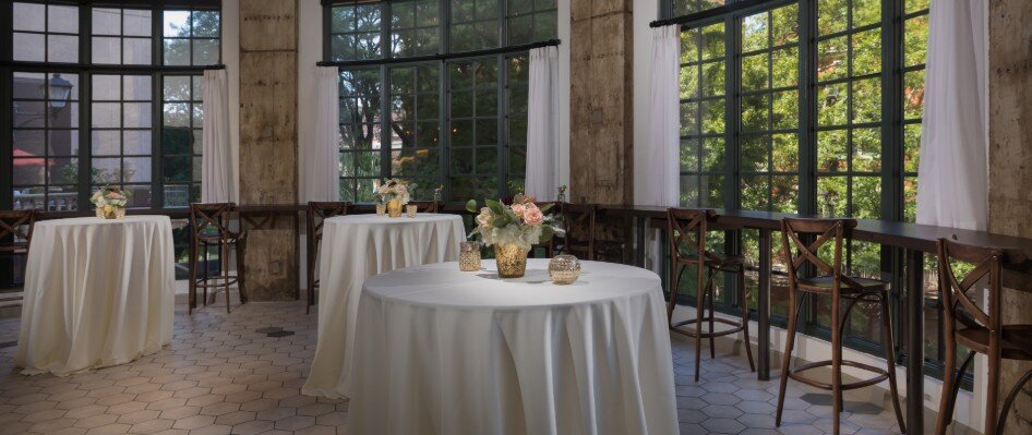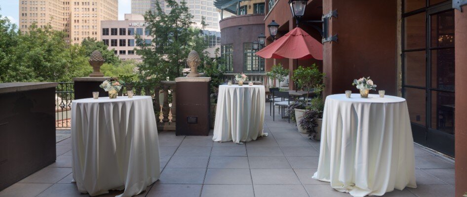 Cocktail reception setup on the balcony at Hotel Valencia Riverwalk